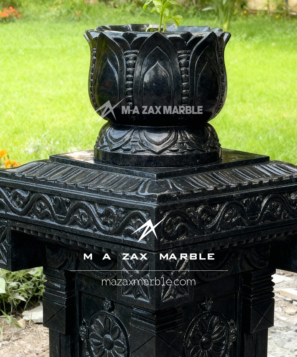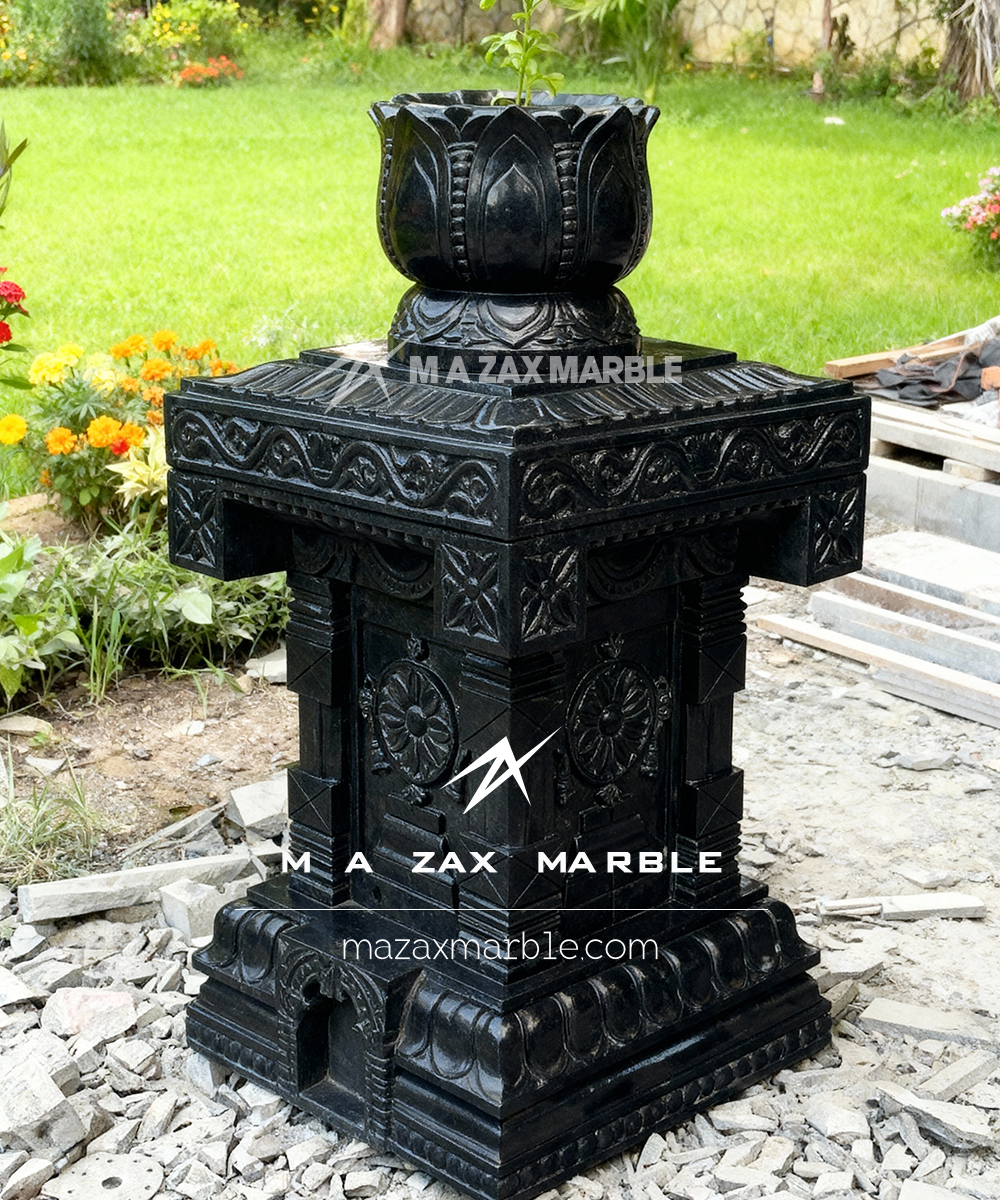 Presenting our Handcrafted Baslana Black Stone Tulsi Vrindavan — a stunning lotus-bowl design carved with deep traditional motifs.