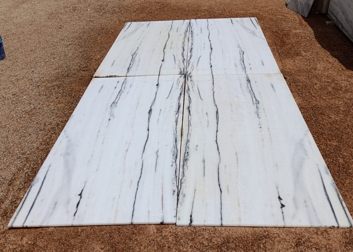Experience timeless luxury with authentic Makrana white marble, featuring elegant natural flowing veins and a perfectly aligned bookmatch pattern. This premium slab adds grandeur to luxury floors, feature walls, temples, hotel lobbies, villas, and modern interiors.